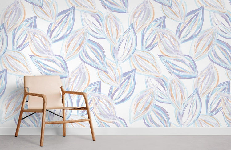 Seamless pattern of pastel-colored leaves sur papier peint mural à motif floral