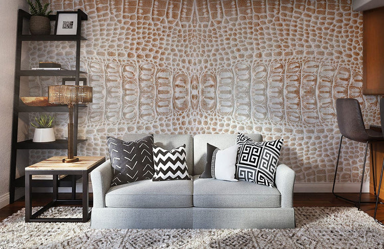 Papier peint mural motif peau de python orange éclat luxueux