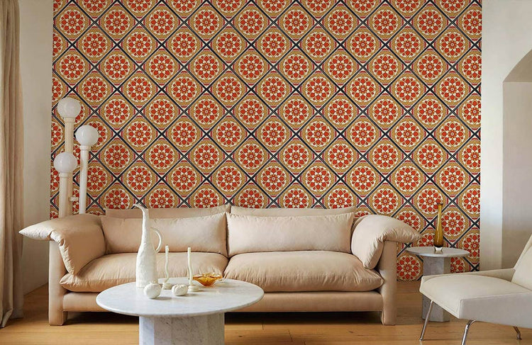 Papier peint mural éclatant aux motifs vectoriels rouge orangé