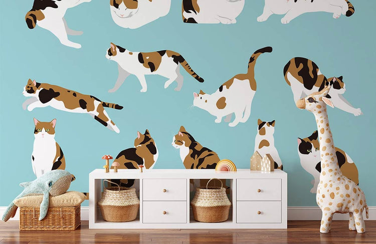 Décoration murale action avec des stickers de chats calico pour papier peint mural