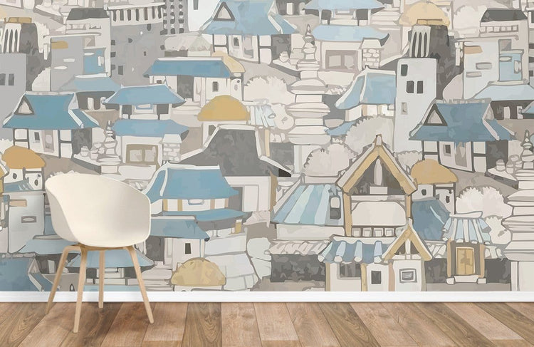 Papier peint mural aquarelle Bâtiments Esquisse d’Architecture Poétique