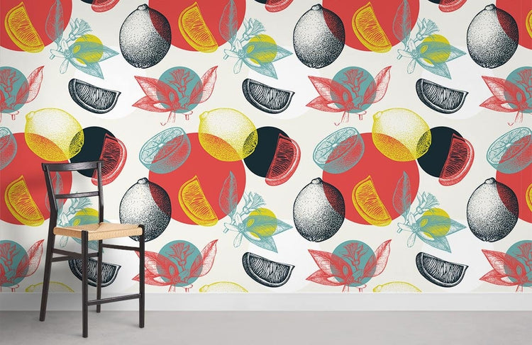 Fresque d’Agrumes Colorée Papier Peint Mural Artistique