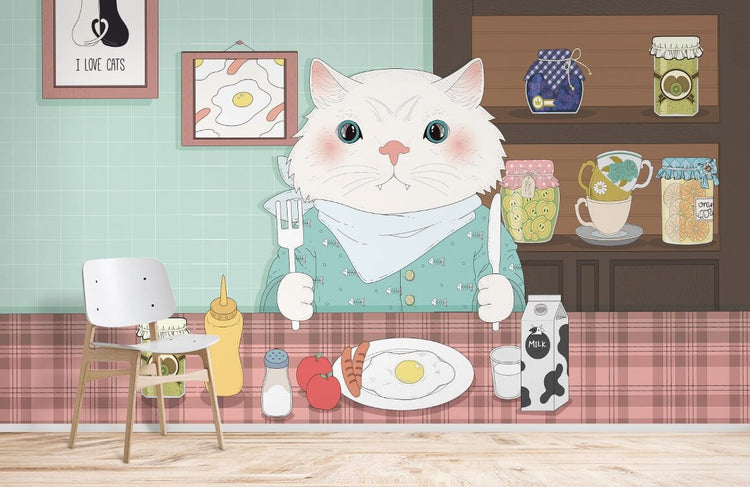 Papier peint mural avec chat et dîner - Le meilleur Papier peint panoramique Sur mesure