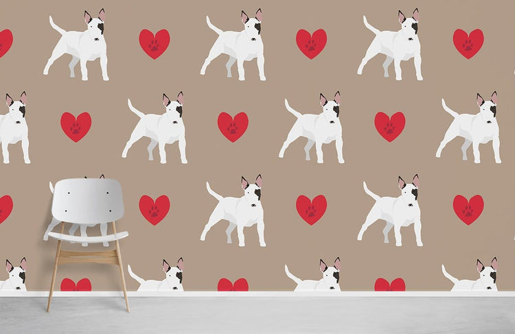 Papier peint mural chien et cœur pour une déco pleine de tendresse
