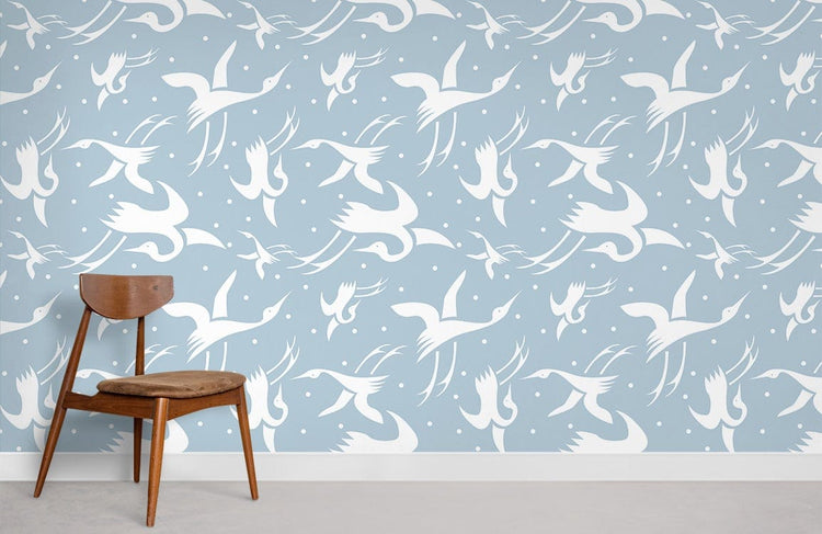 Élégance sereine avec papier peint mural cygne et chaise moderniste