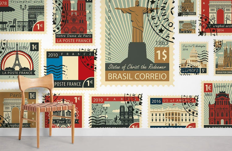 Papier peint panoramique Évasion artistique avec bâtiments célèbres