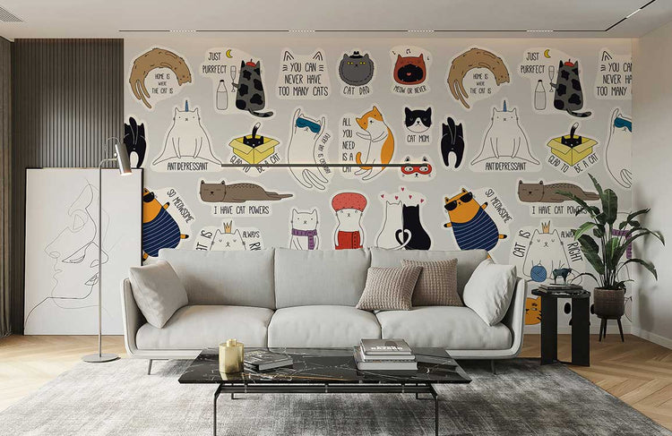Papier peint mural chats liquides dans un salon moderne avec une touche unique