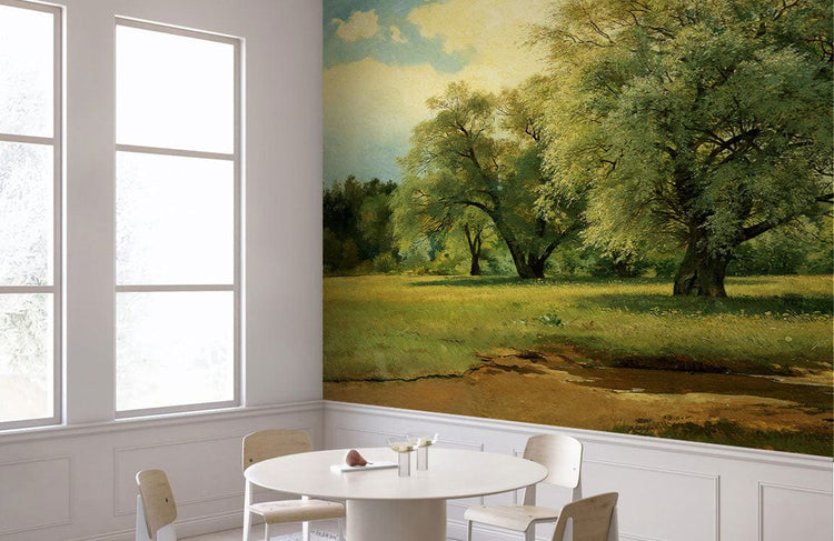 Papier peint mural de Saules illuminés par le soleil dans un pré en peinture vibrante