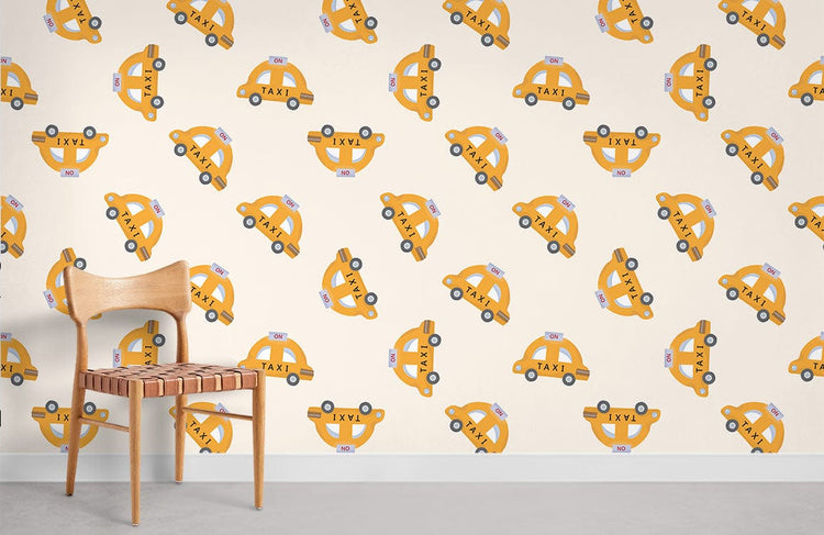 Papier peint mural de taxi dessiné animé avec motif de taxi jaune pour décoration intérieure