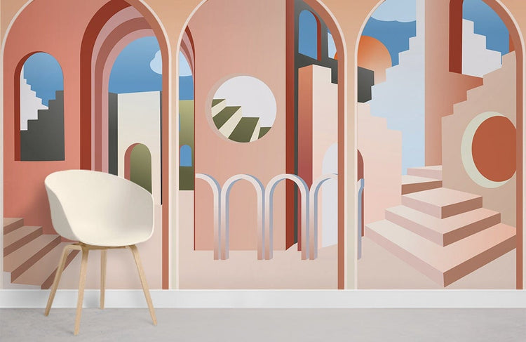 Papier peint mural effet 3D Architecture Pastel et Profondeur