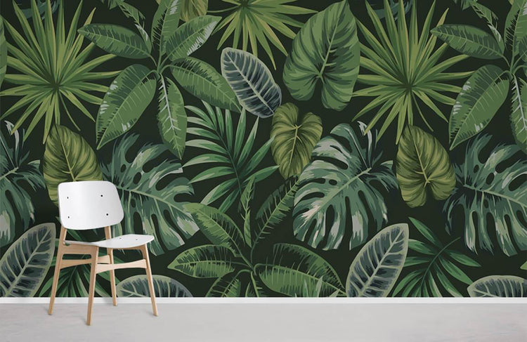Papier peint mural feuilles avec motif tropical, idéal pour décor intérieur vibrant