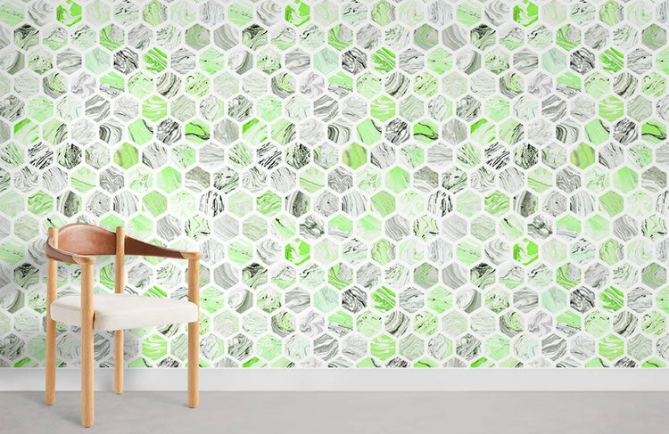 Papier Peint Mural Hexagone Vert Évasion Naturelle et Élégance Moderne