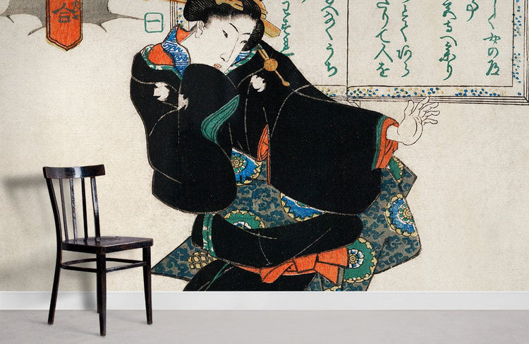 Ukiyo-e japonais femme en kimono noir pour peint mural japonais Ichi immersion totale