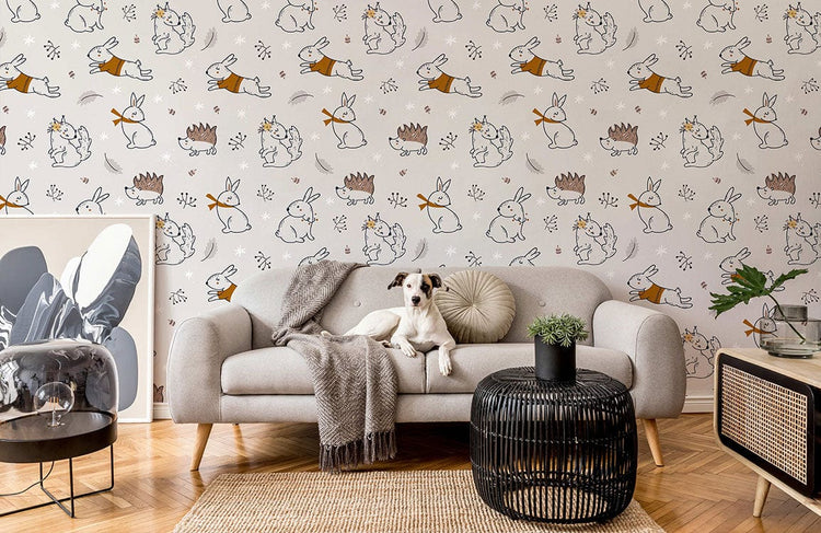 Papier peint mural Lapin et Hérisson pour un décor mural enchanteur