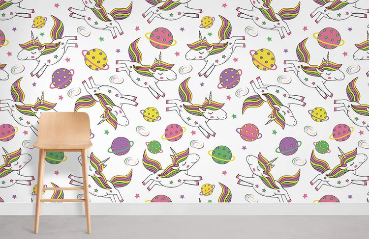 Papier Peint Mural Licorne & Planète - Le meilleur Papier peint panoramique Sur mesure