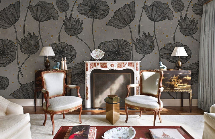 Élégance florale avec Papier Peint Mural Lotus Gris
