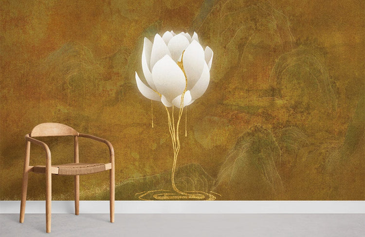Peint Mural Lotus Plaqué Or Élégance et Pureté en Œuvre d’Art