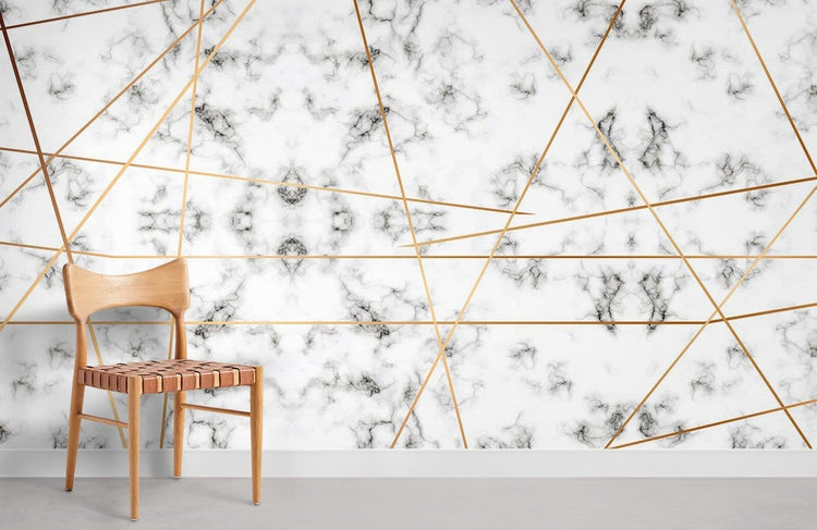Papier Peint Mural Marbré aux Lignes Dorées - Le meilleur Papier peint panoramique Sur mesure