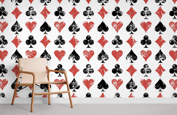 Wallpaper with distressed playing card suit pattern for Papier Peint Mural Motif Poker