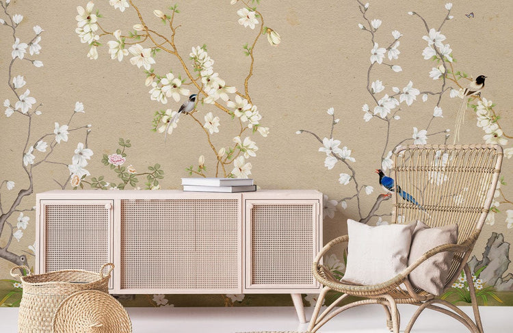 Peint mural oiseaux et fleurs pour un intérieur féerique