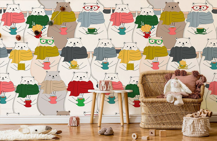 Papier peint mural ours portant écharpes pour une chambre féerique
