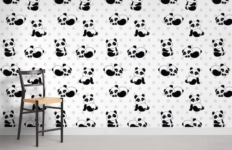 Papier peint mural panda avec motif noir et blanc pour une décoration charmante