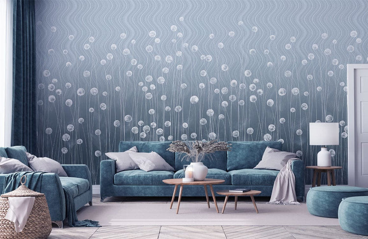 Photo d’une pièce moderne avec mural Pissenlit Étoilé Bleu, papier peint mural élégant