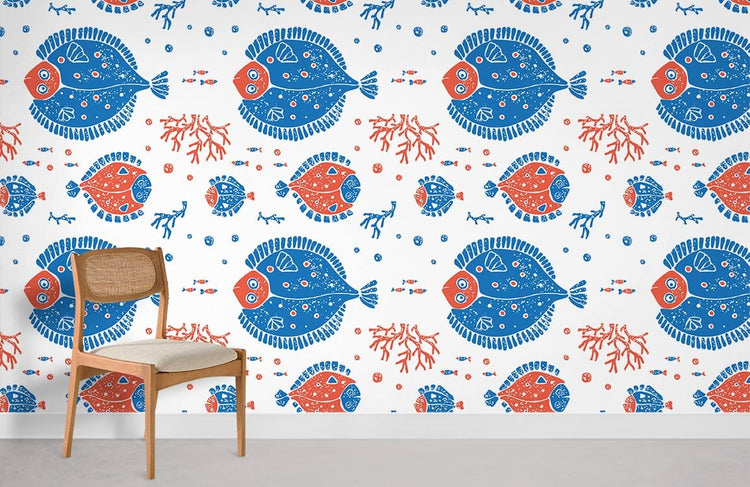 Papier peint mural poissons avec motifs de poissons bleus et rouges pour décoration intérieure