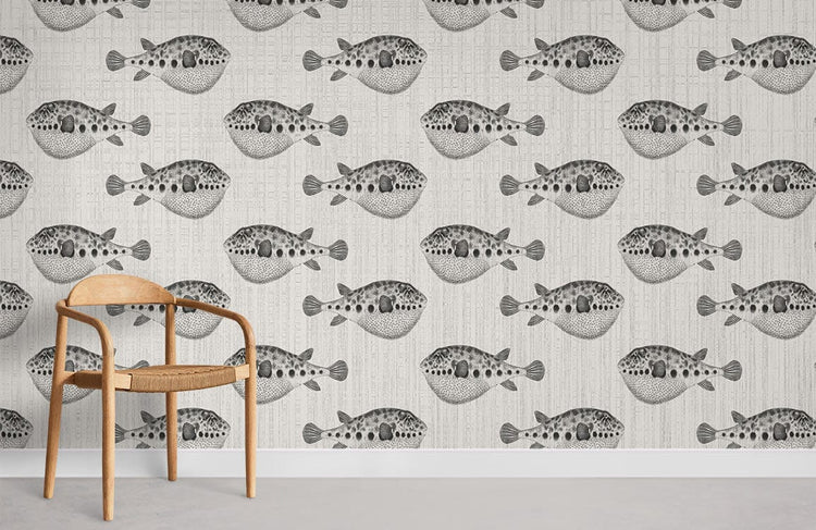 Papier peint mural poissons tachetés avec motif de poisson tacheté sur tissu clair