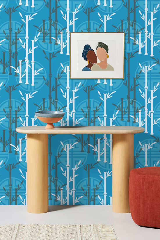 Papier peint mural bambou bleu sérénité et élégance naturelle