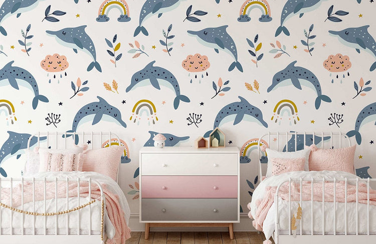 Papier Peint Mural Rêve Monde Sous-Marin aux Dauphins Enchantés