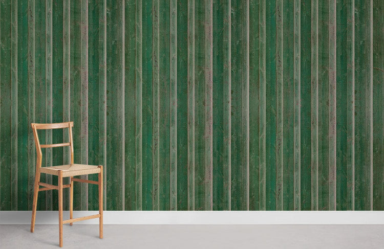 Alt texte: Papier peint mural texture bois vert avec panneau vertical en bois pour décoration intérieure