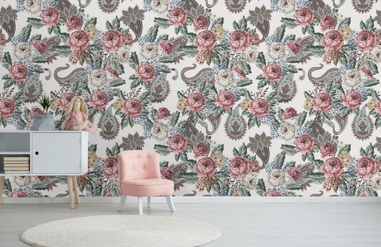 Élégance florale et cachemire en peinture murale vintage