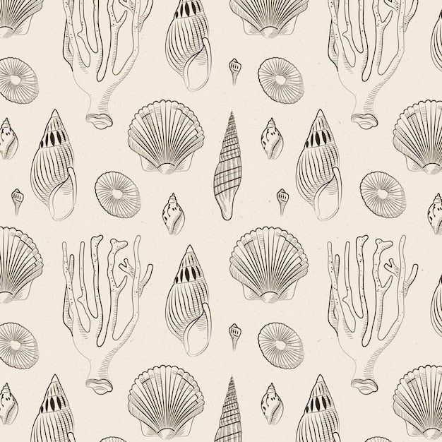 Tapisserie rétro coquillages avec motifs conchyliens, charme vintage, design élégant